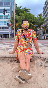 Os conjuntos (shorts/ regata e bermuda alfaiataria / camisa) com mesma cor ou estampa, vem com tudo também.